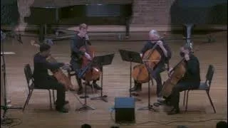 This is a performance of Step It Up, performed as part of the faculty recital on the first evening of the Furman University Cellobration, a weekend camp for young 'cellists. The faculty performers are Khari Joyner, Seth Russell, Robert O'Brian, and Christopher Hutton (who organized and hosted the event). Actually designed for younger players, the recorded soundtrack plays a constant quarter-note cowbell which serves as a metronome.
